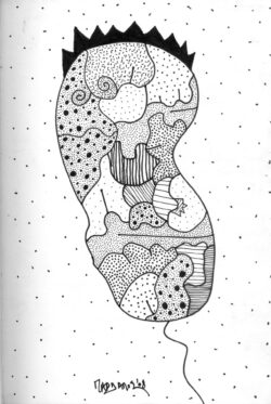 Automatic writing is the method the artist uses to produce his visual outcomes, drawing from the practices of the Dadaists and Surrealists. At the same time, there is a clear reference to the psychedelic art of the 1960s. Morphologically, his work preserves the freedom to swing like an artistic pendulum between figuration and abstraction.