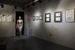 The dot becomes the starting point for a new drawing adventure, completed through free association. The notebook is the “place” where everything begins, while the objets trouvés elevate the personal to the political by appropriating everyday objects such as empty vodka bottles, store mannequins, and even stones from beaches.