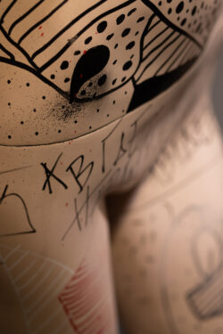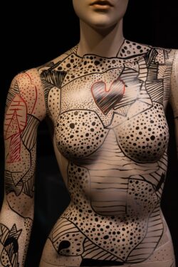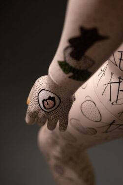 Pardalos’ artistic stance and his obsession with dot art extend to the point of turning to tattooing, using his own body as canvas — marking the profound need to bridge the gap between life and art, an archaic practice known in multiple communities from Africa to Australia.