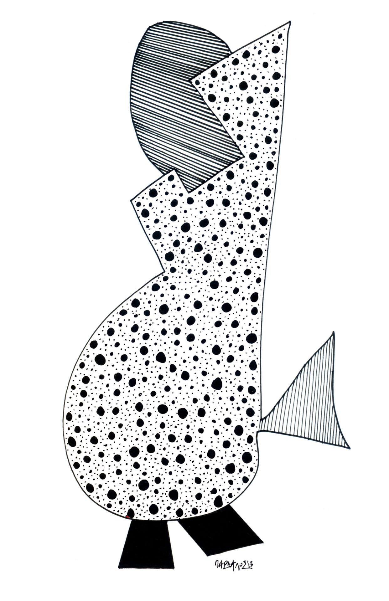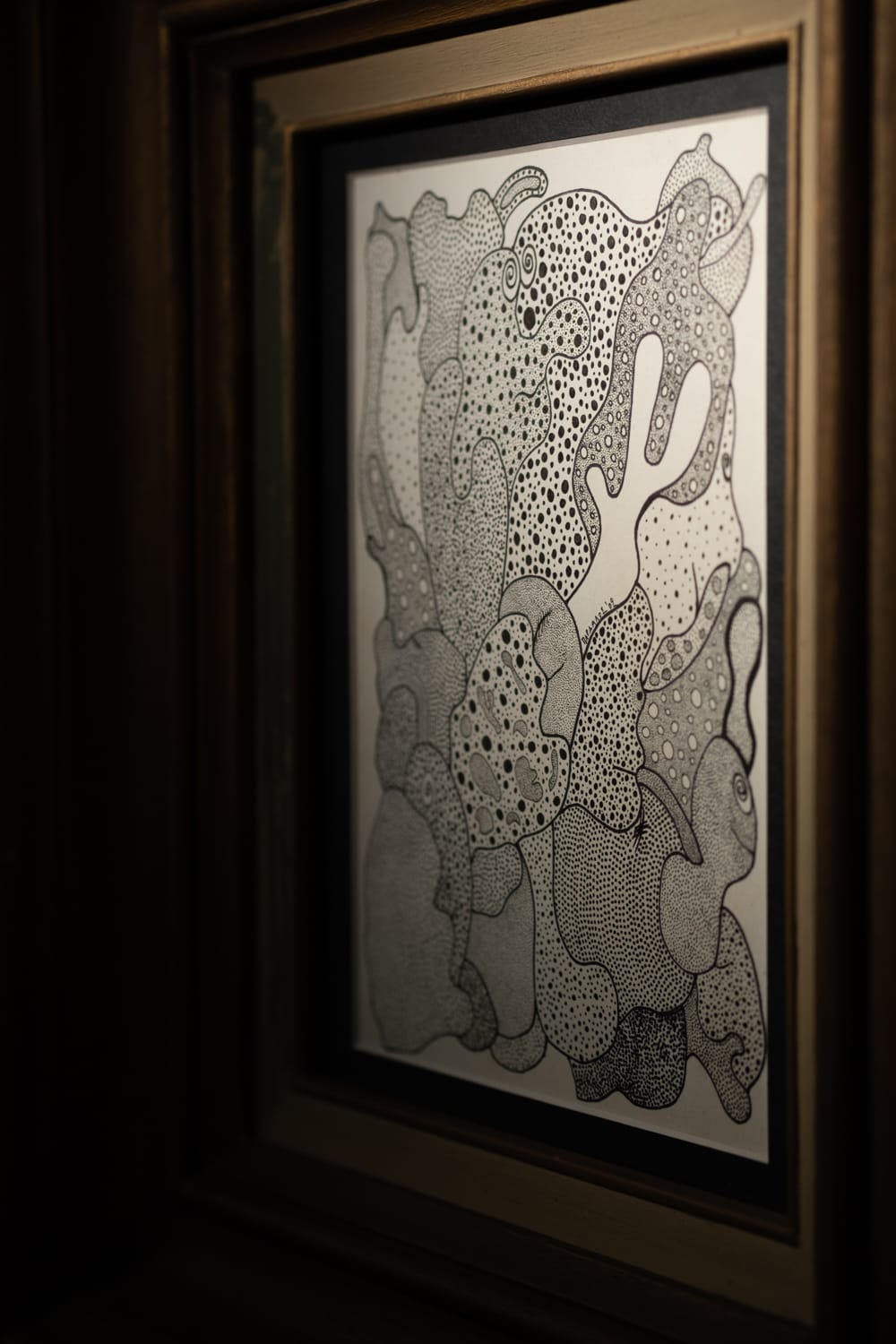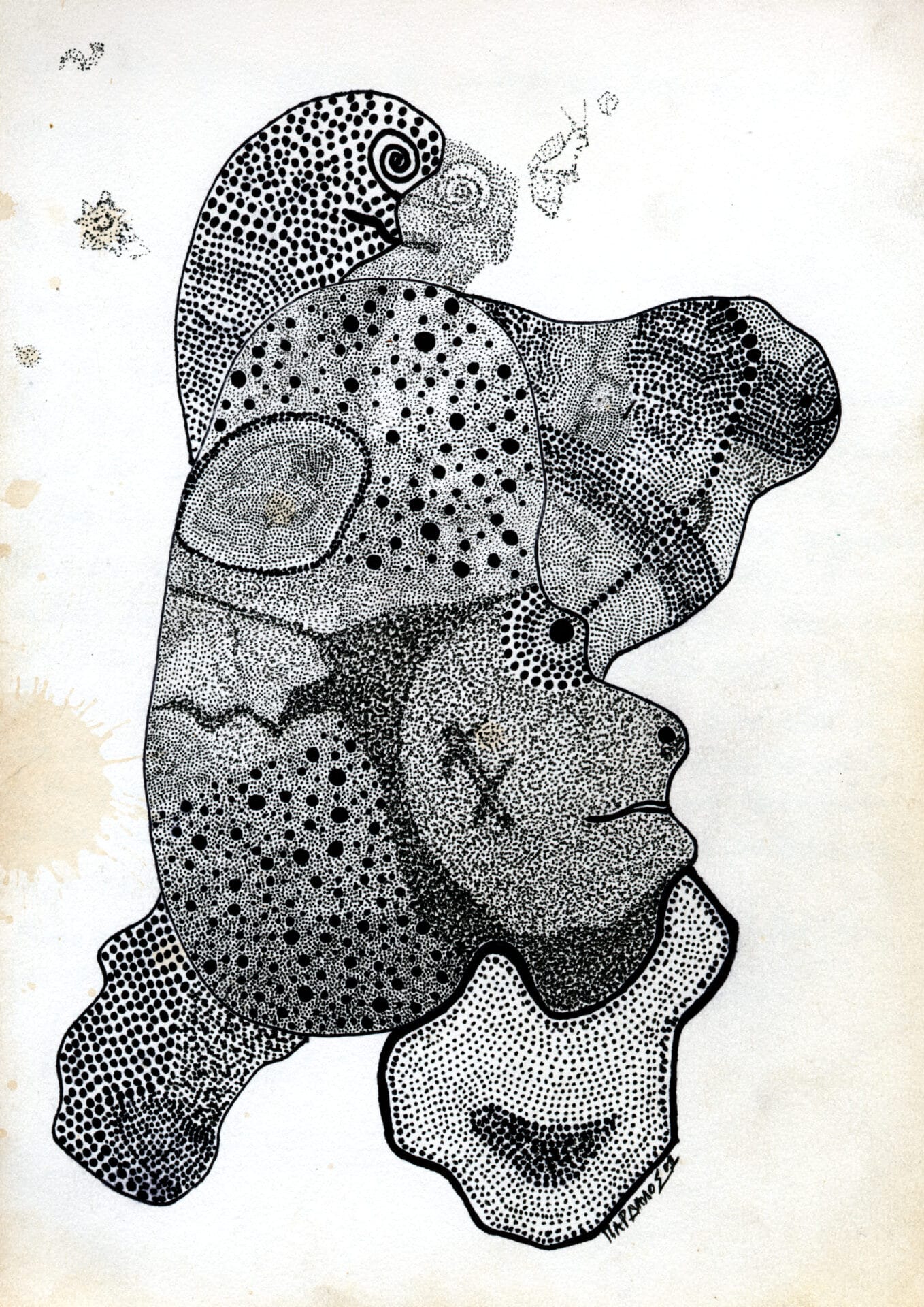 The morphology of Pardalos’ drawings inevitably evokes associations with the folk expression of the Indigenous peoples of Australia, as the dot-art technique is both the “soul” and the “mechanism” through which he constructs his works. His series of drawings and objet trouvé pieces do not arise from any religious or metaphysical framework as in the case of the Aboriginal traditions; however, they maintain a strong element of interiority, integrating it into everyday urban experience.
