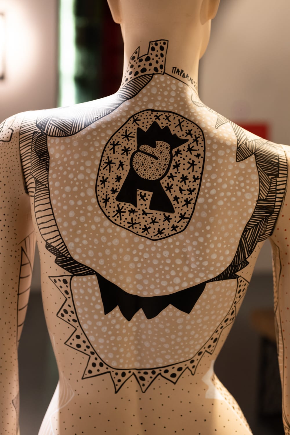 Pardalos’ artistic stance and his obsession with dot art extend to the point of turning to tattooing, using his own body as canvas — marking the profound need to bridge the gap between life and art, an archaic practice known in multiple communities from Africa to Australia.