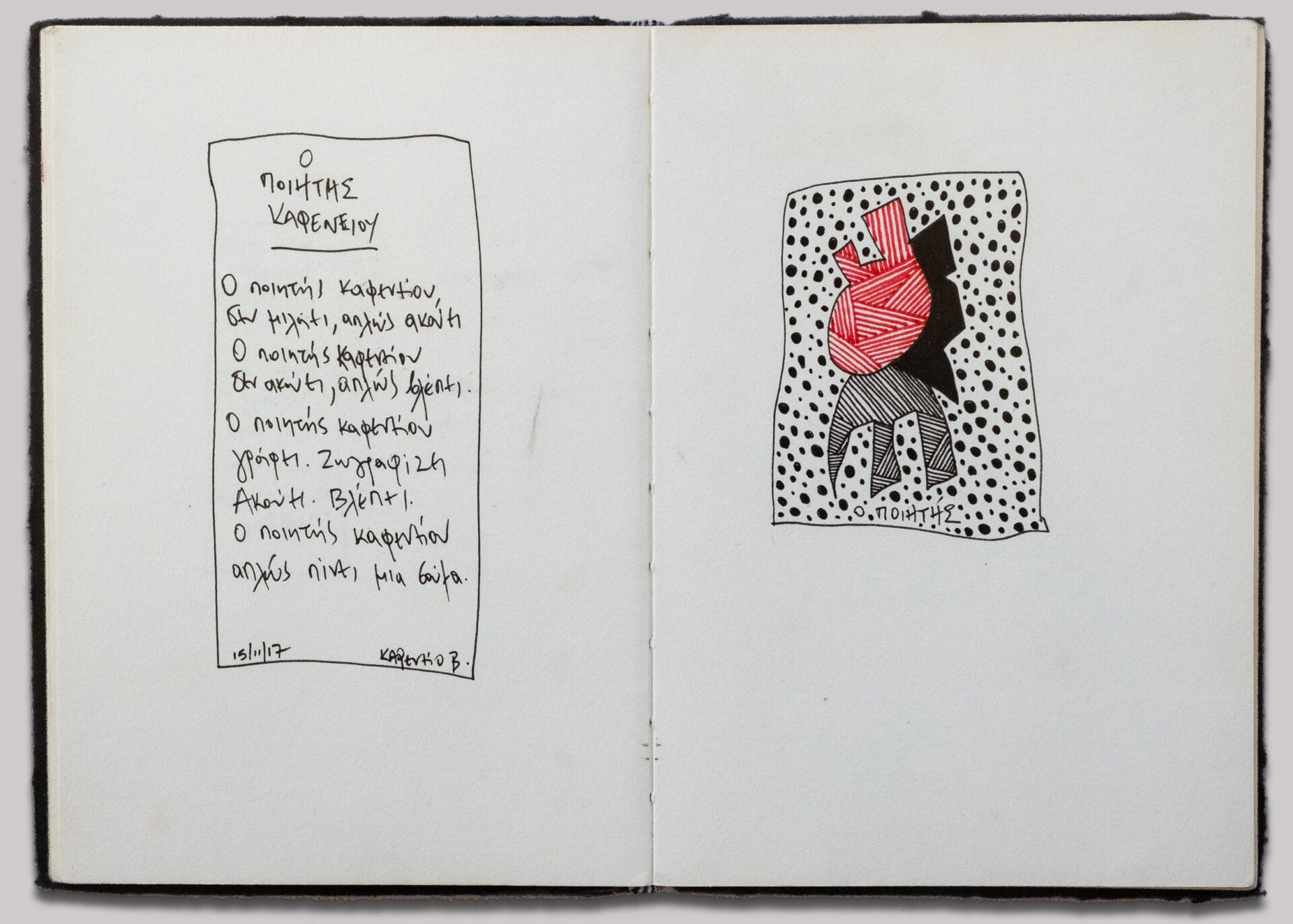 Stergios Pardalos, photographer by profession and visual artist by practice, has spent almost two decades consistently pursuing his artistic explorations, obsessively filling notebooks with drawings, sketches, and poems.